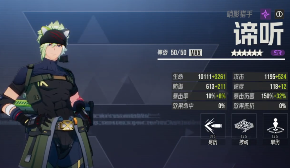 谛听则是整体数值数据都非常优秀,这个角色在单体输出的时候也是非常厉害的角色之一,但是他的角色品质只有SR,比起莉拉姆可能要弱一点,但是他的获取难度非常低,他的整体角色机制就是将自己的被动作为攻击的一个节奏,伤害时为目标增加标记,当攻击的是被标记的对象时,直接额外增加一个普攻,普攻有一定的概率会增加易伤的buff,所以如果能够将被动的标记特质熟练掌握,那么他在伤害这一方面也是非常出色的,玩家们只要多加练习就可以将谛听的最大优势发挥出来。