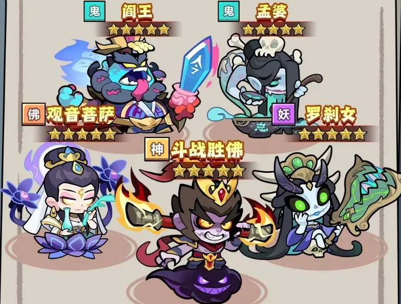 这个阵容由阎王、孟婆、观音菩萨、斗战胜佛、罗刹女以及孙悟空这几位强力神将强强联合而成,其优势在于发展的全面性,物理伤害高,法术伤害也高,同时还具有回血效果,如此多元且均衡的属性配置,使得队伍在面对不同属性怪物的挑战时都能游刃有余,极少受到特定怪物属性的掣肘。而且该阵容成型速度较快,在闯关冒险之旅中,完全无需担忧输出乏力而导致卡关困境。