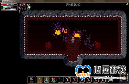 第100层只有一个箱子,打开会给一件英雄装备;第99层有商人,建议在90-100层期间,开启视野技能收集属性水晶,然后将用不上的东西卖给商人换钱,药水和镐子最好多买一些,避免刷怪暴毙。另外25/50层的BOSS可以挖墙过去多刷几次奖励。