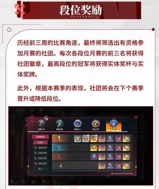 本赛季的表现将直接影响下赛季的起始段位——表现优异的社团将在下赛季晋升段位,而表现不佳的社团则会面临降级风险,每一战都至关重要。