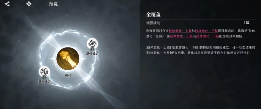 游戏中的涅音梦是多面型辅助的角色,大胆地突破了传统辅助角色的单一框架,尽管定位为辅助,却拥有着多元功能融合,本身的能力上有伤害增幅、控制干扰、输出支援等样样精通,整体战略价值远远超越了那些仅具单一用途的角色,她的终极技能不仅自身具备相当可观的输出能力,更如同全队爆发的核心,能够提供群体增伤效果,而其腿部与手部之间的双形态自由切换机制,则赋予了她无与伦比的灵活性,使其得以从容应对各种复杂多变的战斗局势。