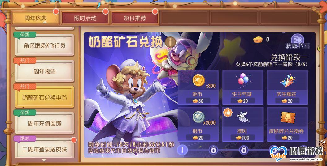 奶酪矿石的作用可不小哦,它可以让小伙伴们在奶酪矿石兑换中心兑换诸多好礼,届时大家只需要兑换收集齐“披风”、“悬浮仪”、“白手套”、“礼帽”、“耳麦”、“指挥棒”6个道具,即可将音乐家杰瑞·星海乐章SN级皮肤免费升级为S级啦!