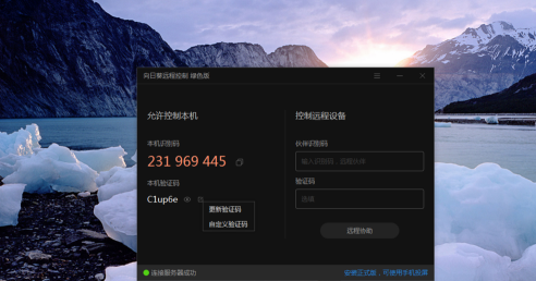 主面板右侧是本机被远程时使用的识别码和验证码;