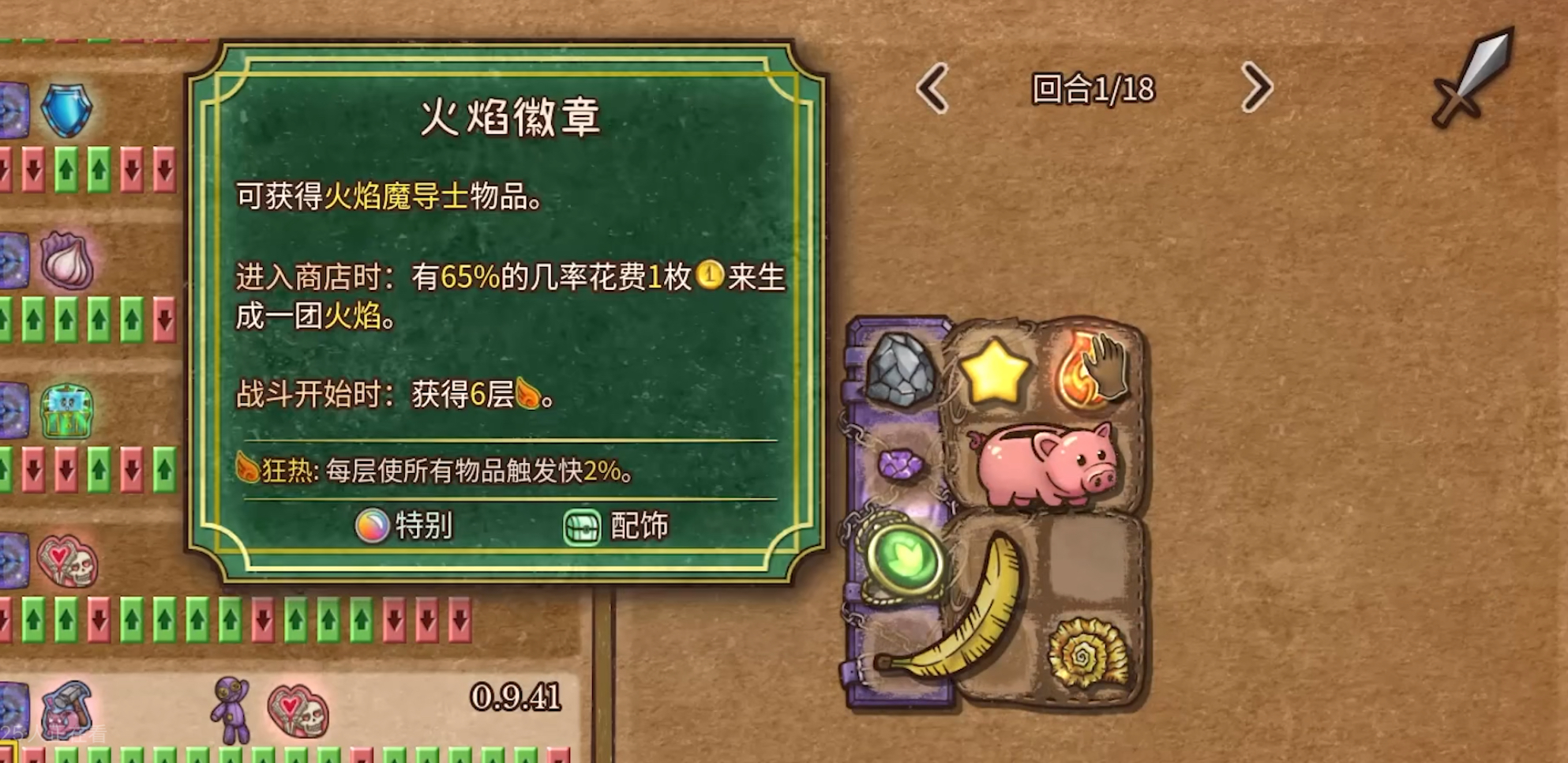 火焰徽章:它可以帮助魔法师获得火焰魔导士的物品,在战斗开始时可以收获层数的热,进店有概率会生成火焰。