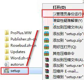 2、右击Setup图标,以管理员身份运行(如图所示)。
