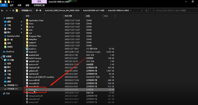 1、解压文件后,打开AutoCAD2008,找到Setup.exe(如图所示)。