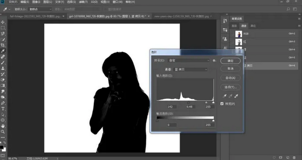 2、从【菜单栏】-【图像】-【调整】打开【色阶】,进一步调整色阶,如下图▼