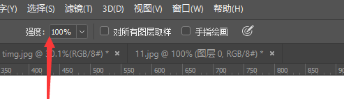 第五步,我们在上方工具栏可以调整强度,也可以选择是否对所有图层操作,所有图层操作都可以被涂抹。