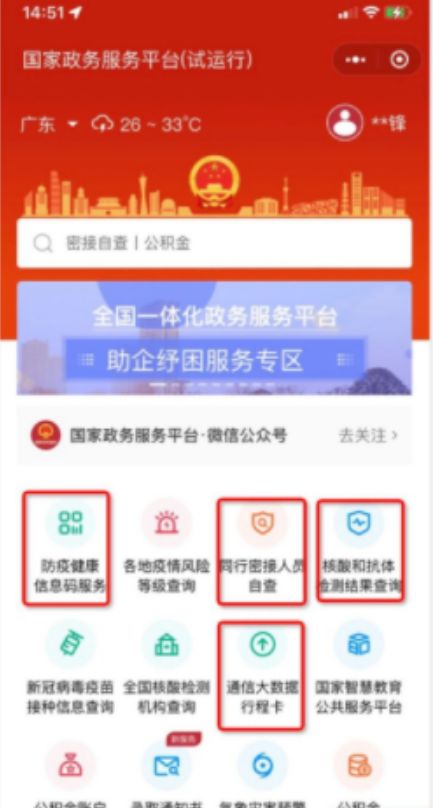 这五张截图分别是自己的弹窗截图(本文2.1节)、防疫健康信息码、同行密接人员自查、核酸和抗体检测结果查询和通信大数据行程卡。后四张在国家政务服务平台小程序直接可以获取,如图三。我看有人是最多上传六张,那就加一张图3中的各地疫情风险等级查询。