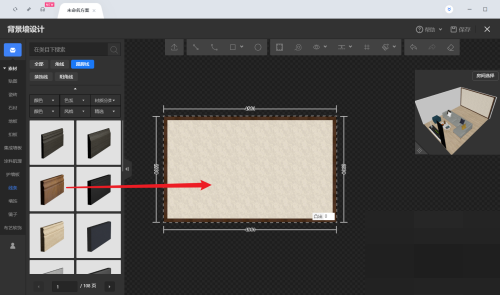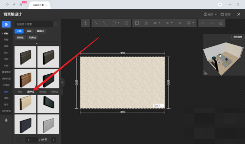 5、最后选择一个踢脚线样式,然后在背景墙中单击。