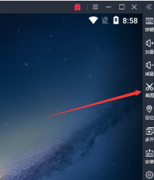 打开模拟器后,在模拟器界面的右边有一栏工具栏,其中有个像小剪刀的图标则就是截图工具了,需要截图的话点击截图工具即可。