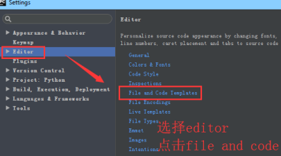 然后选择【editor】,选择【File and Code Templates】模版