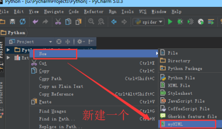 右键创建一个my HTML,如下图所示