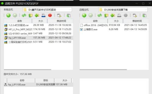 进入远程文件界面了,然后可以看到、右边的框框显示的是你的远程办公电脑的桌面文件,左边是本地主机桌面的文件。需要什么文件就可以自行查找啦,轻轻一拖一点远程文件就到你面前来咯!