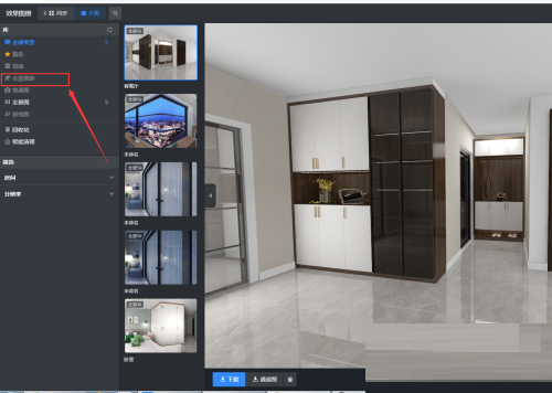 2、然后点击左侧的“全屋漫游”,选择“去生成全屋漫游”。