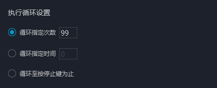 循环方式有:循环次数、循环时间、手动停止3种方式,3种方式只能选择一种,选择后设置相应的时间、次数后就可以完成设置,在执行过程种还可以设置循环间隔、执行倍速,间隔最少0秒,倍速最大8倍。