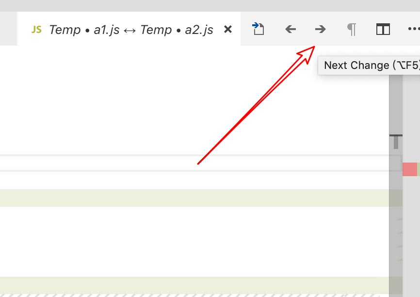 5、如果差异的地方比较多,我们可以使用右上角的这里二个按钮,分别是跳到上一个/下一个有差异的地方。