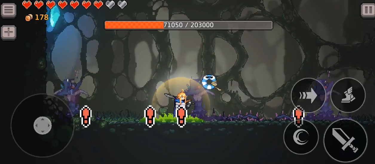 当女巫采用分身术时,可拥有更多条荆藤与玩家进行对决。玩家可以通过连跳的方式闪避女巫的攻击,当血量值非常高的时候,可以选择与女巫硬刚。女巫的分身出现时,我们也可以找到他的薄弱点选择逐个攻击,并使用具有高伤害性的技能,迅速将他打败。