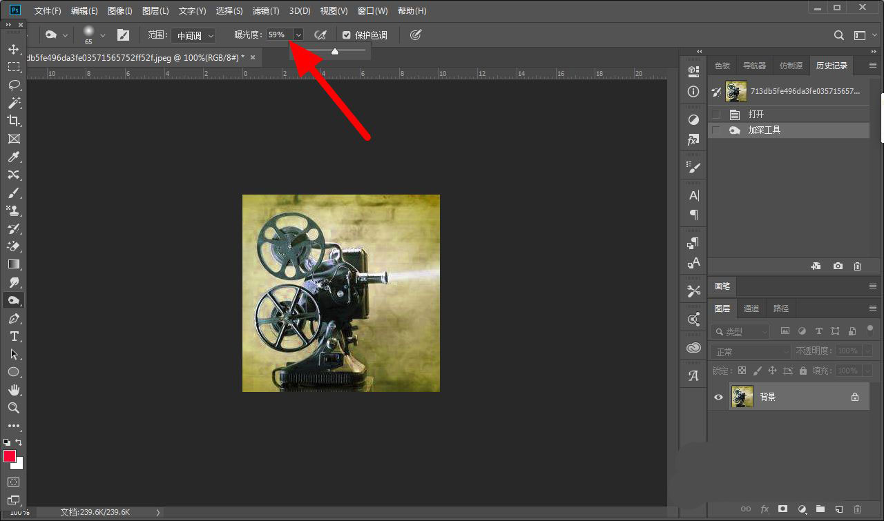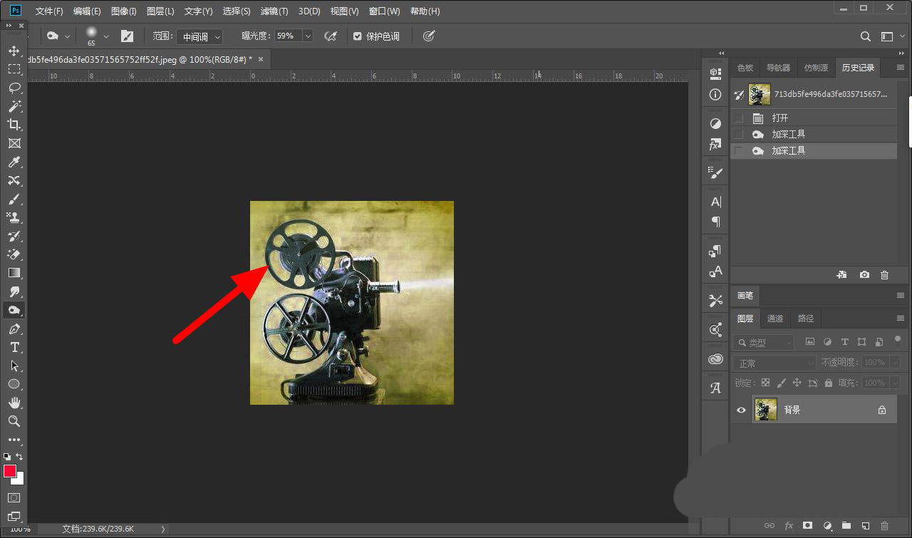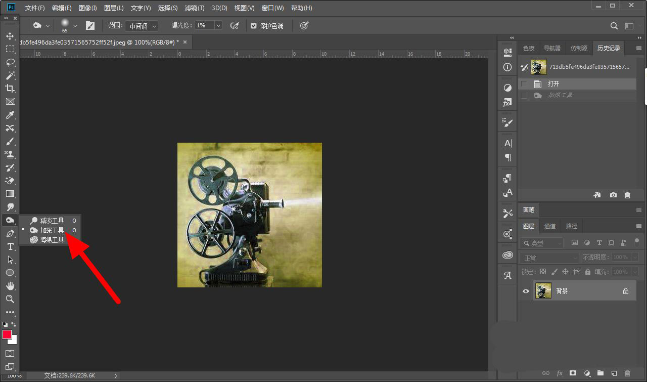 2、然后选择 加深工具,在工具栏,选择 加深工具。
