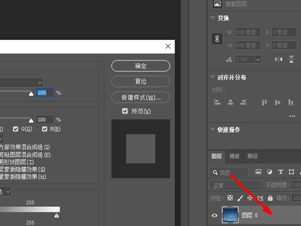 1、首先用ps开启图片,双击图层打开图层样式。
