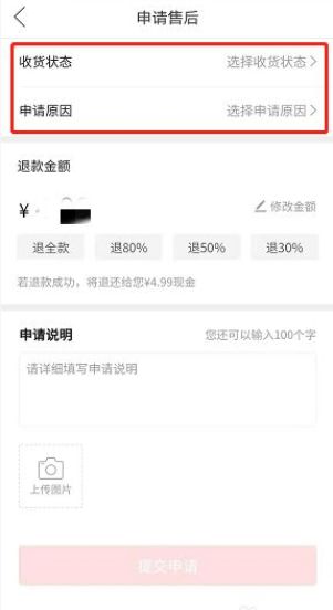 按要求输入收货状态,退款原因,退款金额,申请说明后提交申请即可。