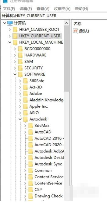 接着删除HKEY_CURRENT_USER-software-Autodesk内的与预卸载软件相关的所有内容,如图。