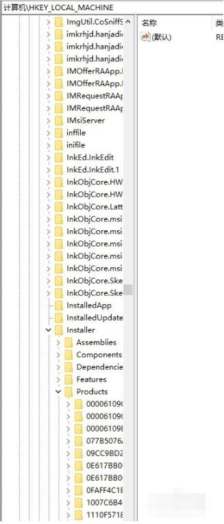 最后删除HKEY_LOCAL_MACHINE-software-classes-intaller-products相关内容。注意:该操作需认真谨慎。