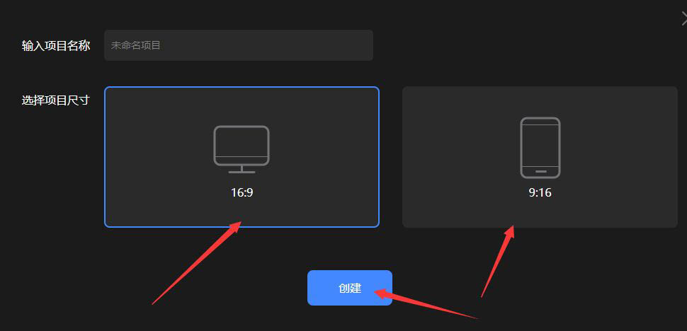 然后点击开始创建项目选择项目视频的比例点击【创建】按钮。