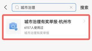 3、查找关键字【城市治理】,然后点击城市治理有奖举报;