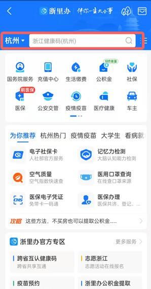 2、确保当前地址为【杭州】,点击上方的搜索框;