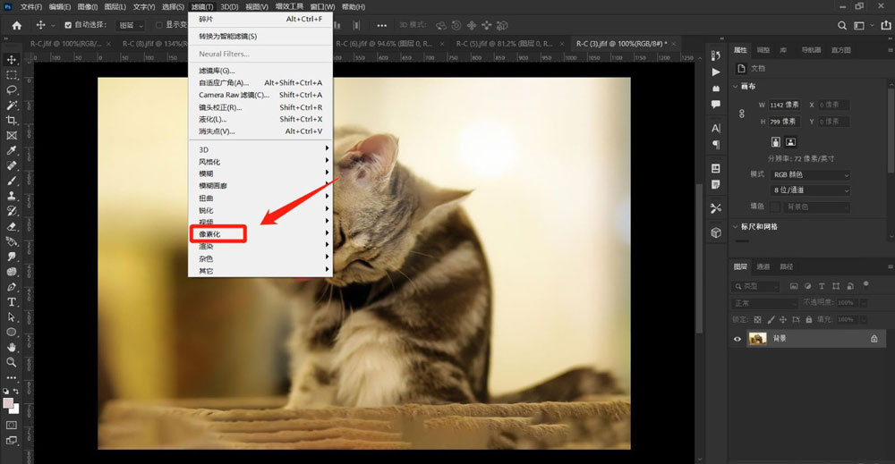 然后在打开的“滤镜”选项中点击“像素化”选项