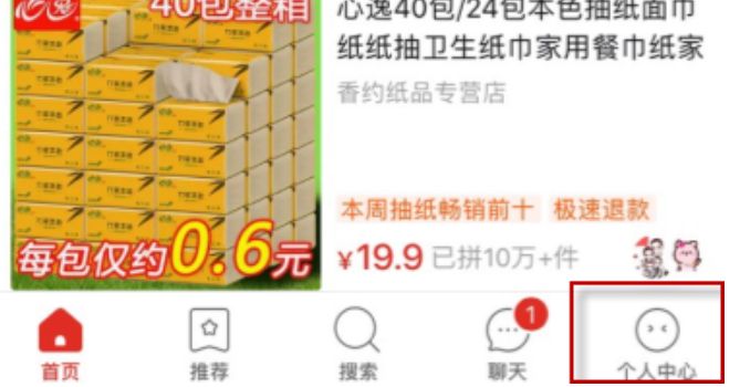 1、打开拼多多,在底部菜单栏点击个人中心;