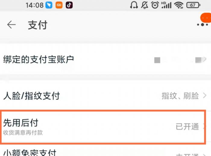 3、在支付页面,点击【先用后付】,进入后即可看到当前额度。