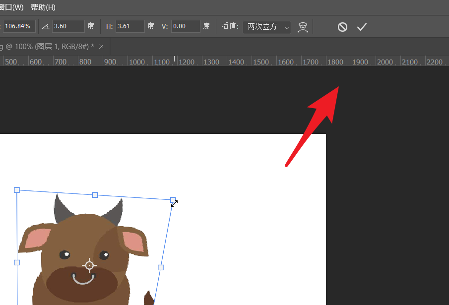 这里以下图中的小牛为例进行扭曲操作。先按ctrl+t进入自由变换。