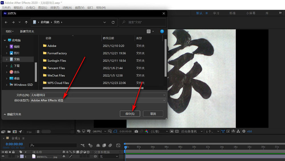 第五步,最后可以看到保存的文件格式为aep了,双击使用AE软件打开还可以进行修改。