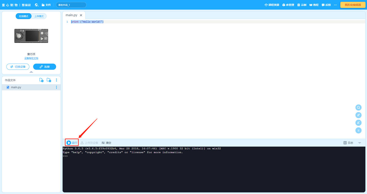 首先打开mBlock5慧编程,点击窗口右上角的【Python编辑器】按钮,进入Python编程模式;