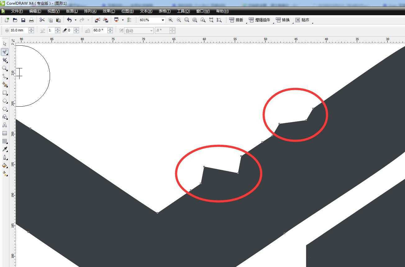 接着在线上点击一下,可以看到出现了锯齿的效果。