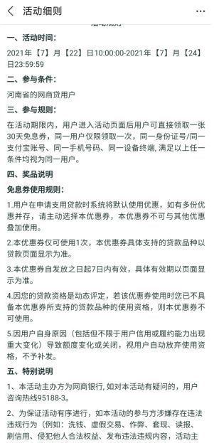 此次支付宝花呗河南免息券领取时间是在7月22日10点至7月24日凌晨,在此期间河南人名都可以领取,在领取之日7日内使用即可,具体参见支付宝河南免息券活动规则。