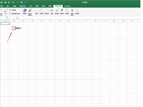 第一步:打开表格,点击【开发工具】,点击【复选框】图标。