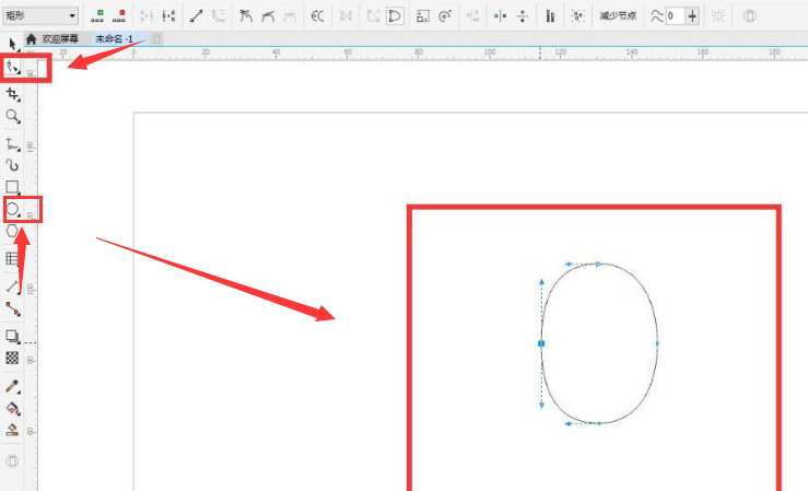 1.点击椭圆工具绘制一个椭圆,并用形状工具适当调整椭圆节点