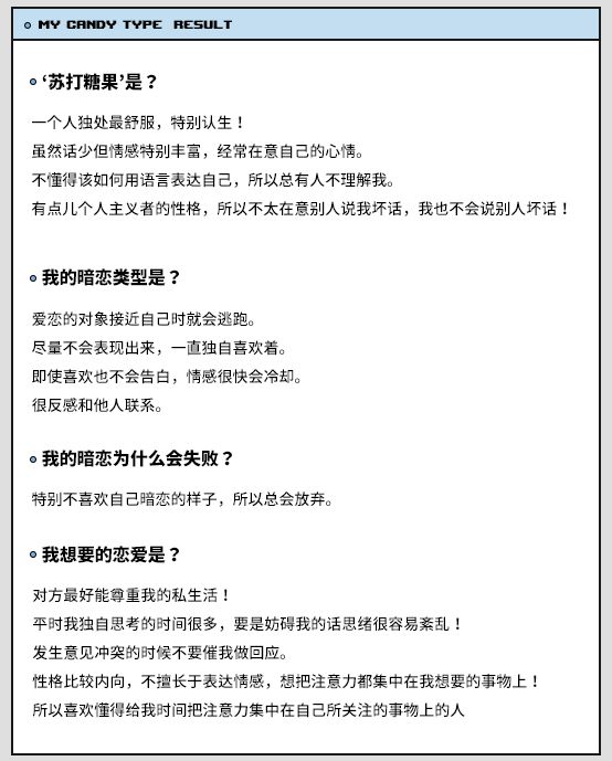 以上就是关于暗恋糖果测试地址链接分享,大家如果有想测试的可以去尝试下,看下自己的暗恋情况如何?