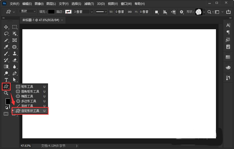 第一步:首先我们新建一个白色的画布,然后在左侧找到【自定形状工具】(如图所示)。
