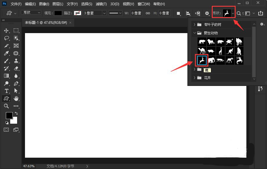 第二步:接着,我在上方形状里面找到【鹿】的图案(如图所示)。