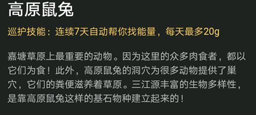 高原鼠兔的作用的可以连续7天帮大家找能量,每天最多是可以找20g。