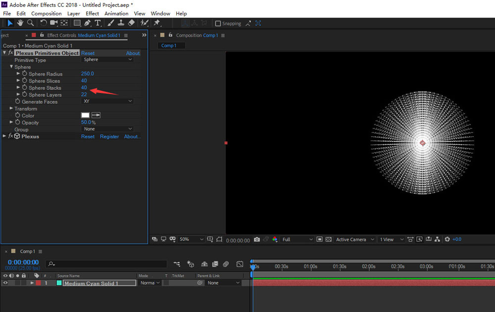 会看到球体变成了一个毛绒状,再将Sphere Slices、Sphere Stacks参数调小