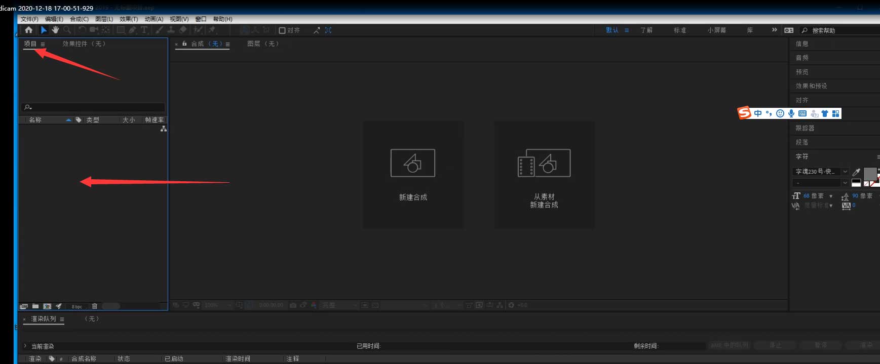 1、打开AE,把准备好的素材导入AE(导入的小卡车轮子和车身要分开哦)项目处双击空白导入图片(如图)。导入源文件就可以拉。