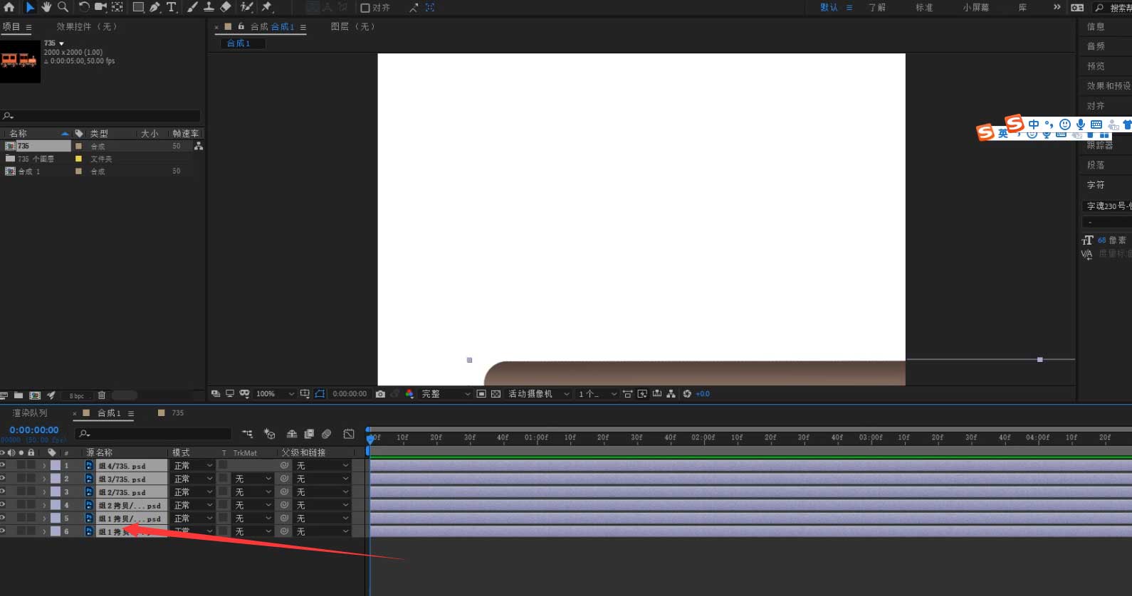 1)双击源文件合成(也就是图片735)