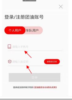 2、选择点击登陆,就进入到以下界面,这时候只要把手机号码输入进行,并填写相应的验证码,就可以正常使用团油了,
