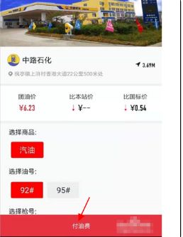 4、点击其中一个加油站,就能看到具体的信息了,到达了加油站之后,就可以选择相应的汽油型号进行加油了,