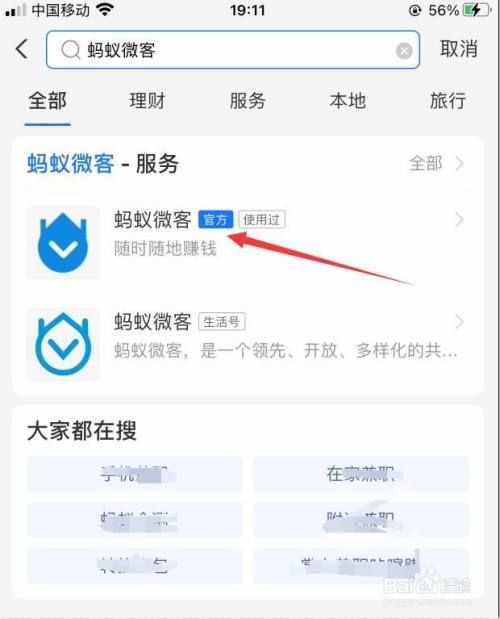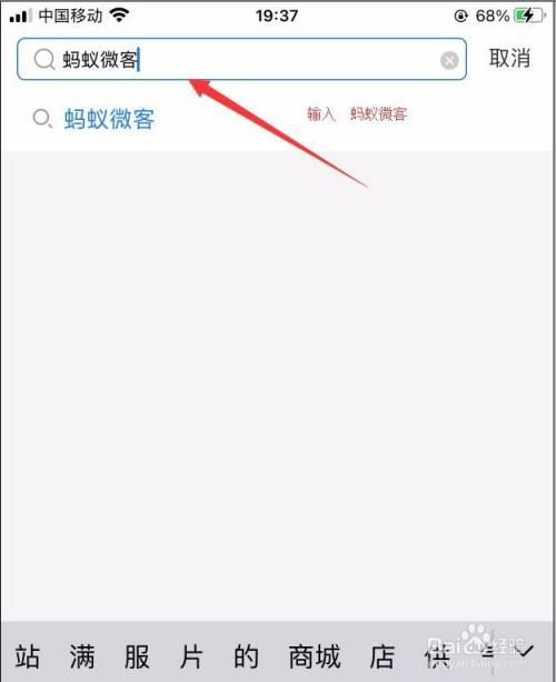 点击搜索之后 下面会出现蚂蚁微客小程序